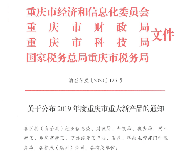 賽迪裝備首次獲得重慶市重大新產(chǎn)品認定