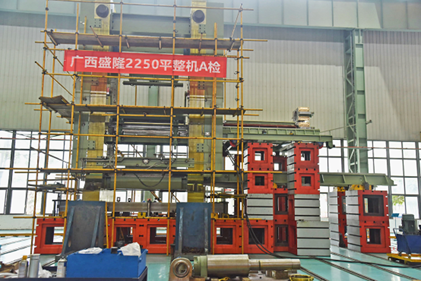 由賽迪裝備負責成套供貨的廣西盛隆2250平整機總重量達312噸,高7.5米、寬3.5米,最大軋制力為18000KN。該設備精度要求高,其中機架垂直度小于0.05mm/m,水平度小于0.05mm/m,機架間的水平度小于0.05mm/m,用于厚度為1.2mm-6.35mm,寬度為900mm-2130mm帶鋼的平整和分卷。