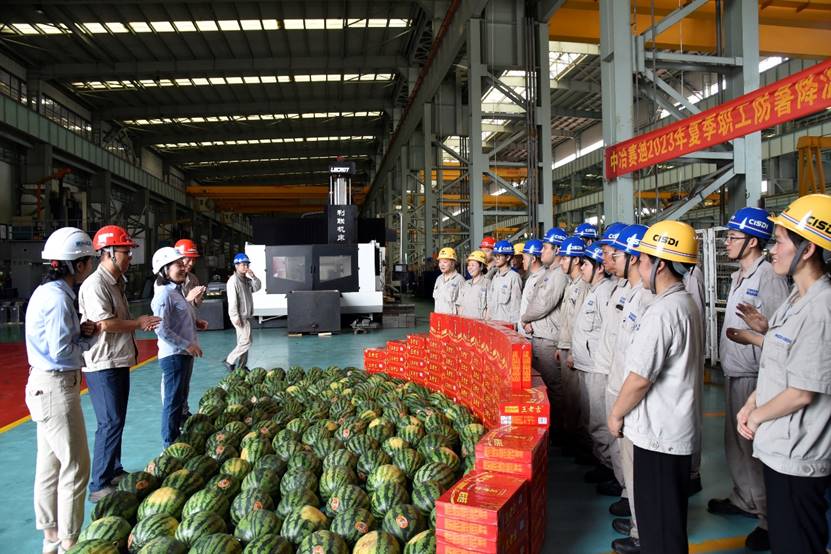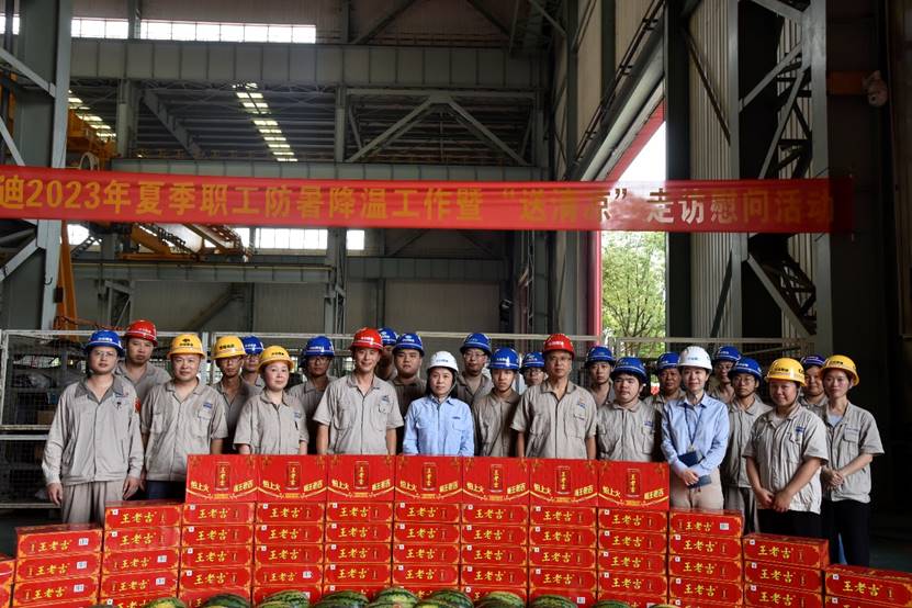 隨著7月11日三伏大幕正式開啟,重慶地區(qū)也進(jìn)入了一年中氣溫最高,且又潮濕、悶熱的時(shí)段。為表達(dá)集團(tuán)對(duì)廣大職工的關(guān)心與愛護(hù),7月13日上午,集團(tuán)工會(huì)主席范淑華帶隊(duì),到中冶賽迪裝備開展高溫慰問工作,并為奮戰(zhàn)在生產(chǎn)一線的員工送來清涼飲料和西瓜。