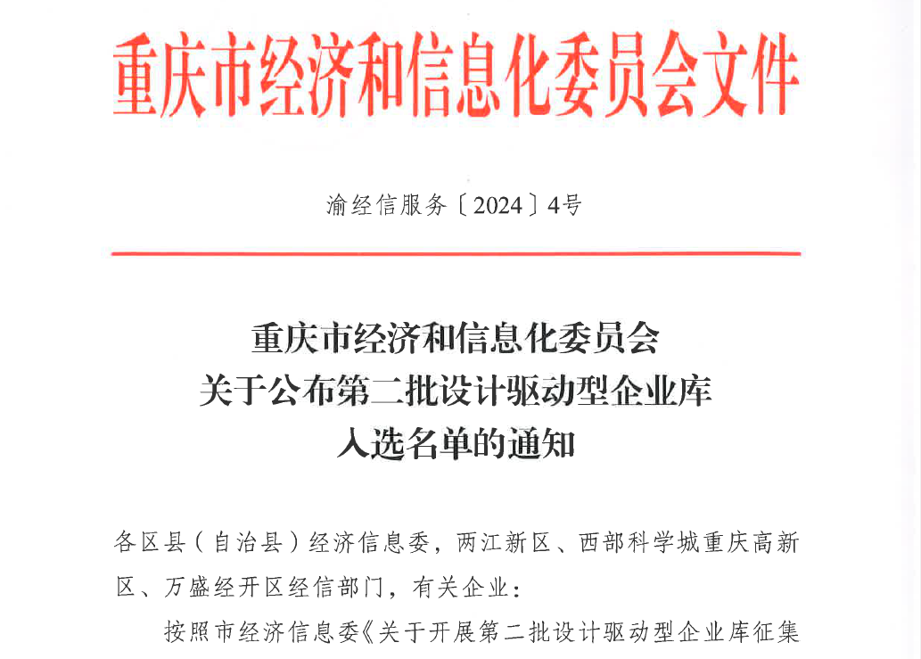 公司順利入選重慶市第二批設計驅(qū)動型企業(yè)庫