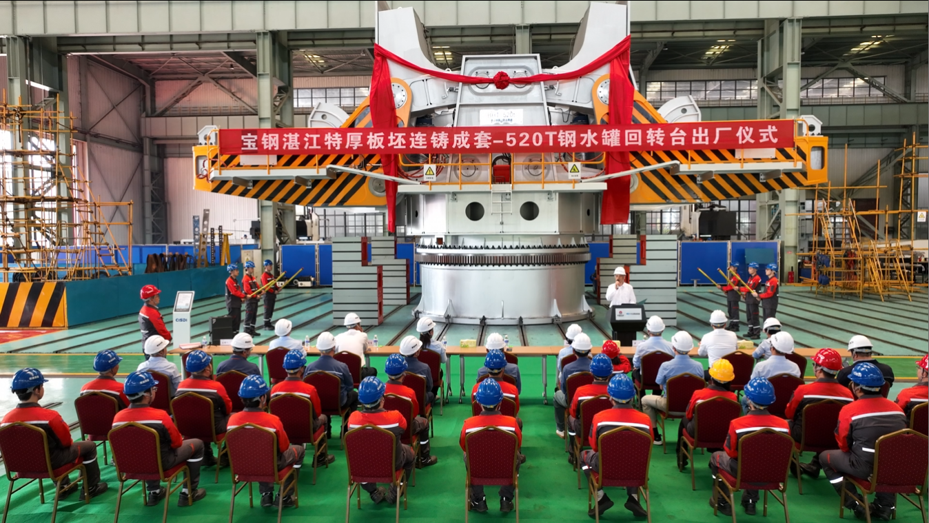 鋼水罐回轉(zhuǎn)臺作為連鑄流程的關(guān)鍵裝備,肩負(fù)確保連鑄過程連續(xù)性的重要作用,其性能直接關(guān)乎產(chǎn)線效率。寶鋼湛江項目的鋼水罐回轉(zhuǎn)臺最大載荷達(dá)520噸,是當(dāng)前國內(nèi)最大的鋼水罐回轉(zhuǎn)臺,經(jīng)過縝密策劃與高效組織實施,成功在6個月內(nèi)圓滿完成設(shè)備制造任務(wù),創(chuàng)造了同類設(shè)備制造周期新紀(jì)錄,實現(xiàn)了里程碑式的突破。